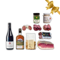Dieci specialità selezionate per la merenda perfetta: La Schiava del Gumphof e il liquore al fieno di montagna di Walcher creano la cornice. In più un pezzo intero di speck del Kaltenbrunnhof, Kaminwurzen e Kaminwurzen di cervo della Macelleria Stefan, salame di manzo del Pramstrahler e la leggendaria "Hexensalami" di Silbernagl. Croccante mini Schüttelbrot dell'Oberprantacher, rafano fresco del Beerenhof e aromatico sale alle erbe del Kräuterschlössl completano il pacchetto.